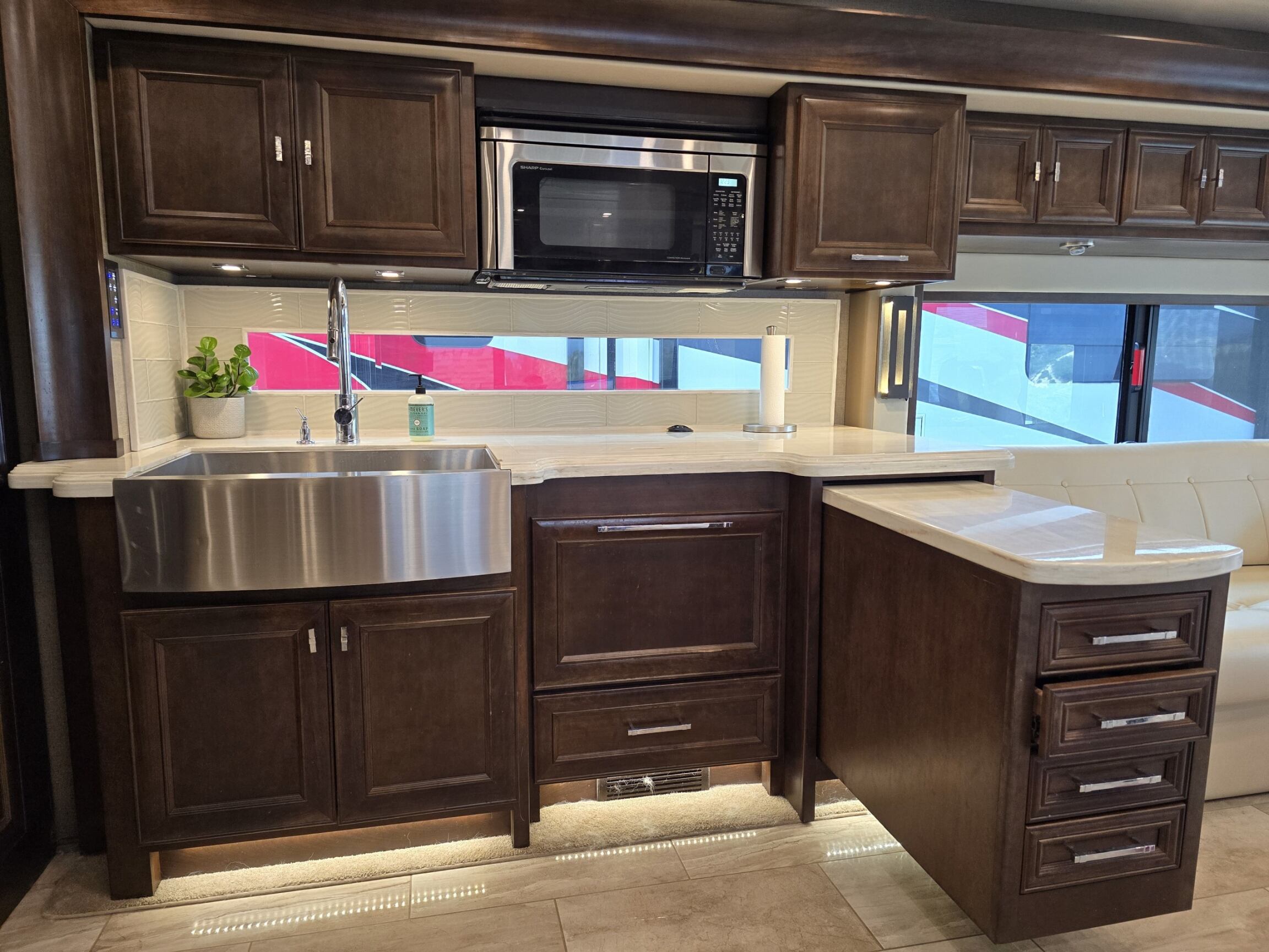 Our luxury motorhome is meticulously maintained and thoughtfully appointed, ensuring a smooth, elegant experience for you and your loved ones. Whether you're planning a romantic weekend escape or an epic cross-country expedition, our premium motorhome provides the perfect home-away-from-home.